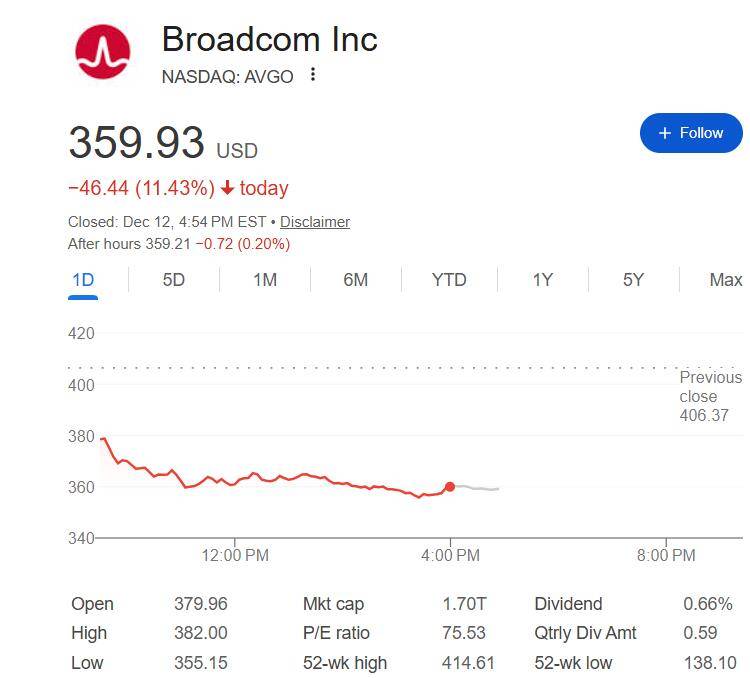 然而,陈福阳在周四上的表态让投资者感到不安。他透露,博通未来六个季度有730亿美元的AI产品订单积压,但这一积压订单规模令部分投资者失望。